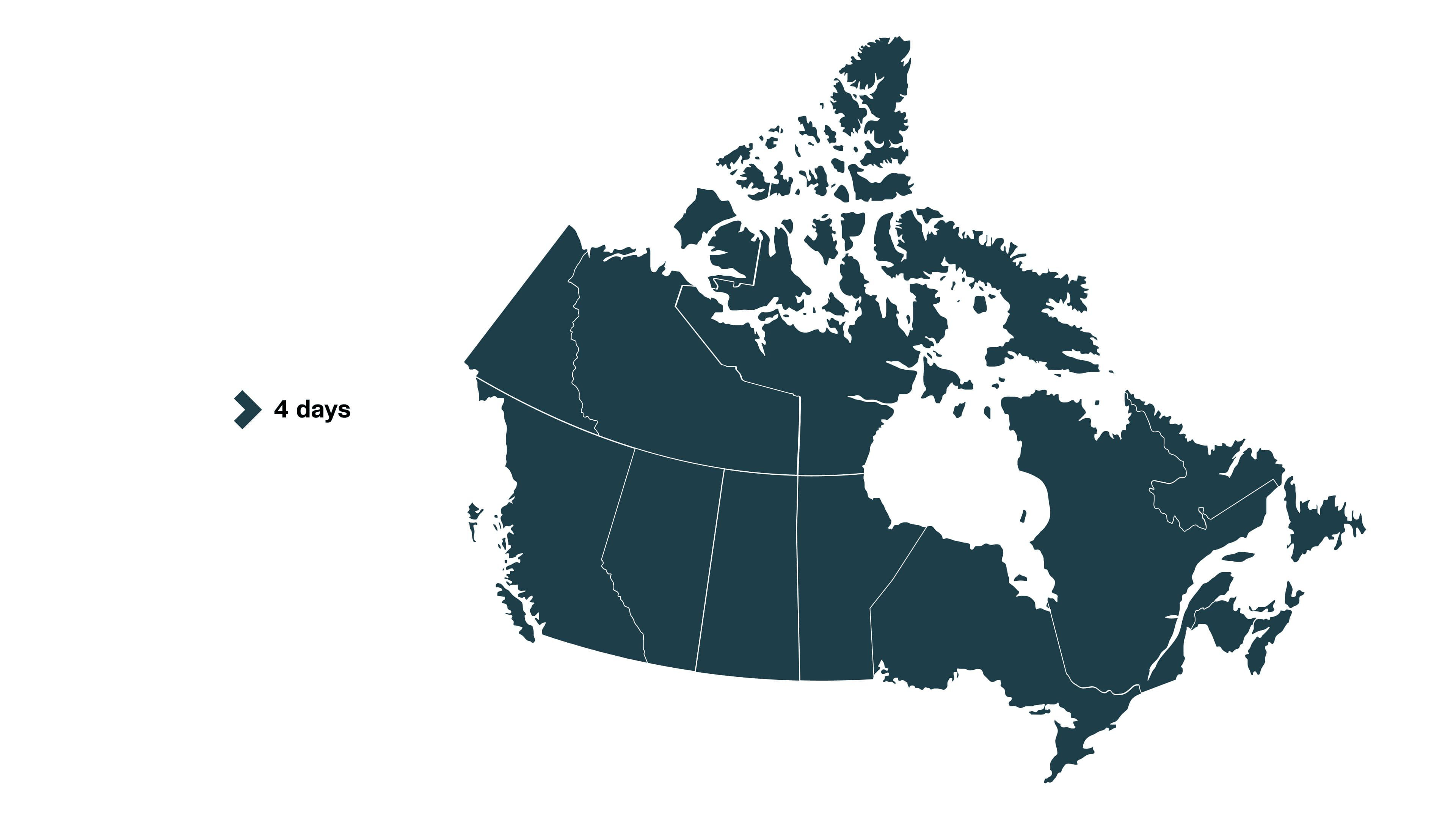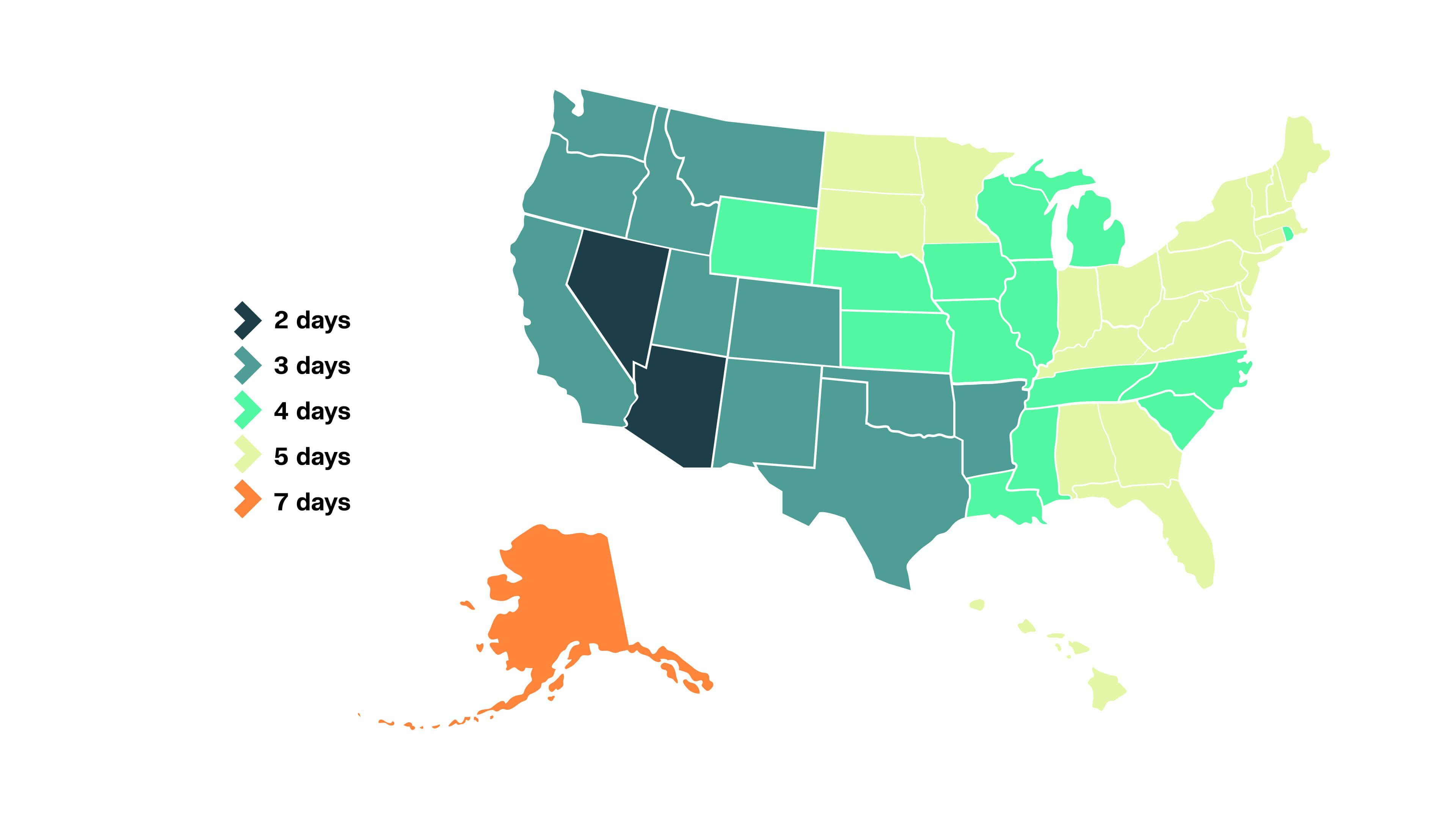 Standard : entre 2 et 5 jours, selon l’État et la région (jusqu’à 7 jours pour l’Alaska).